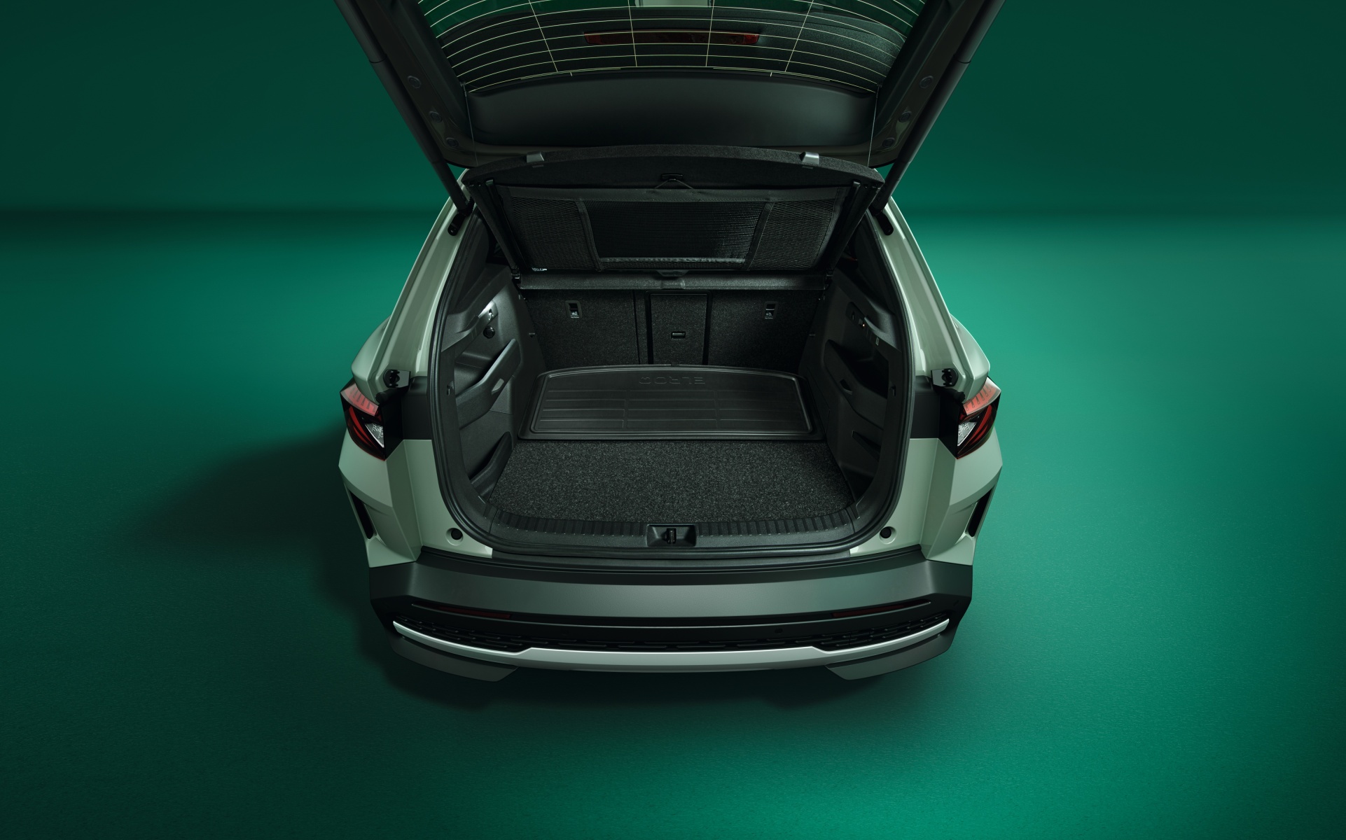 - Passformgenaue Matte für den Kofferraum mit Schriftzug "Elroq" auf der Kunststoff-Seite